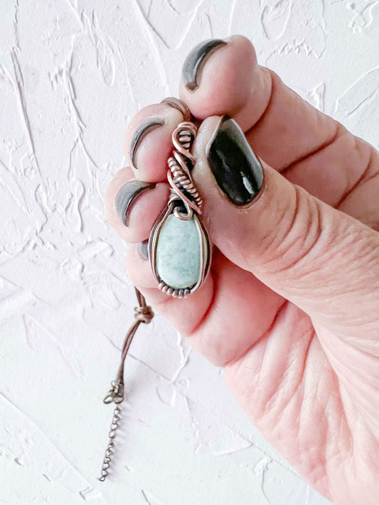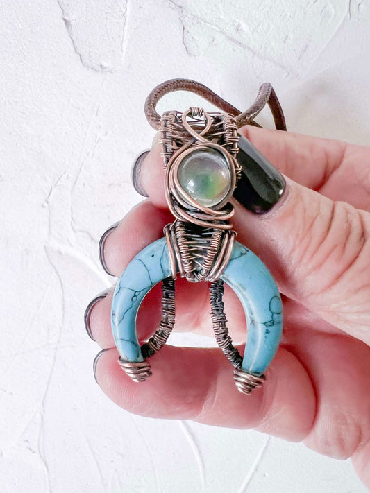 Copper Wire Woven Pendant Necklace Hand Made Amulet