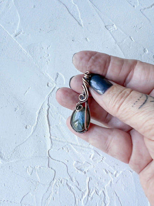 Cheeky Labradorite and Copper Wire Mini Pendant