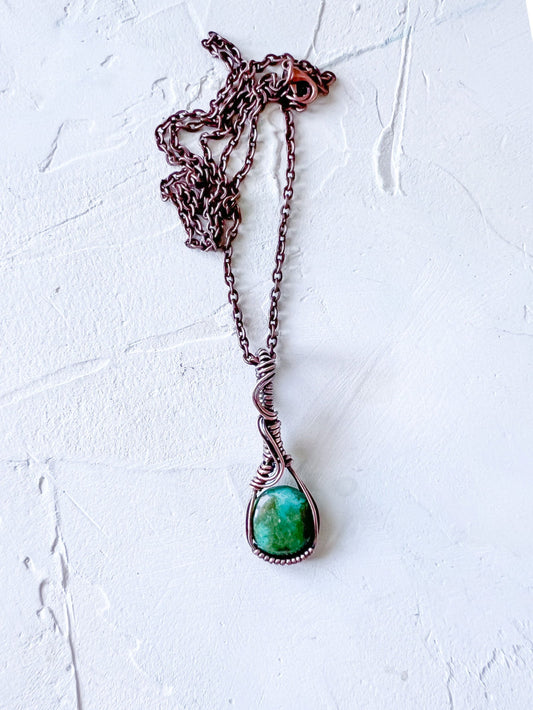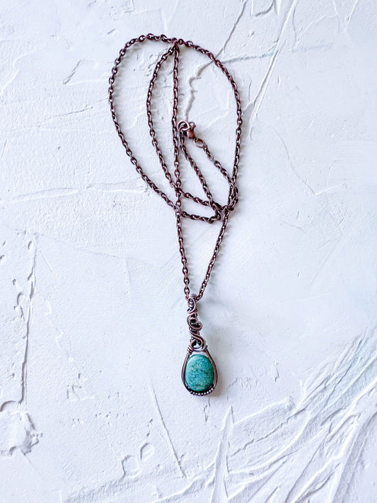 Green Tibetan Turquoise and Copper Pendant Necklace