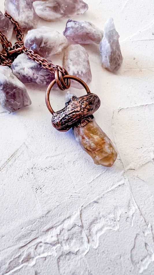 Raw Citrine Crystal Pendant Necklace – Copper Wrapped