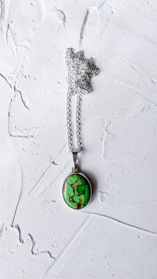 Green Oyster Copper Turquoise Silver Pendant Necklace