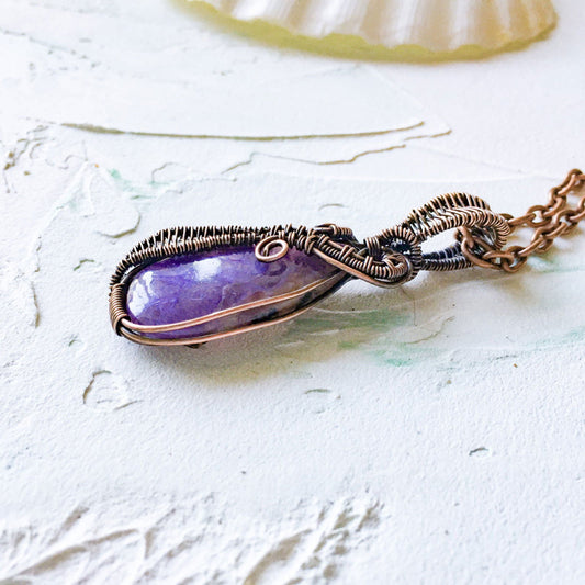 Exquisite Chevron Amethyst Tree of Life and Copper Wire pendant Necklace