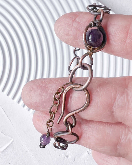 Copper Charm Bracelet with Amethyst and Safety Chain