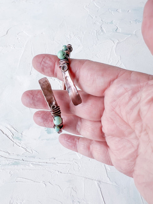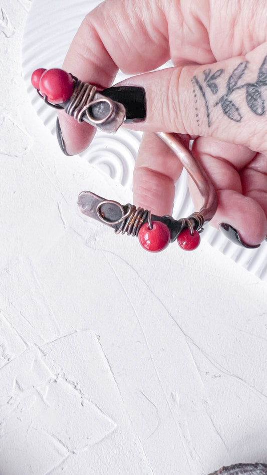 Rhythm and Flame – Copper and Red Jade Bangle Bracelet