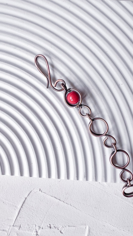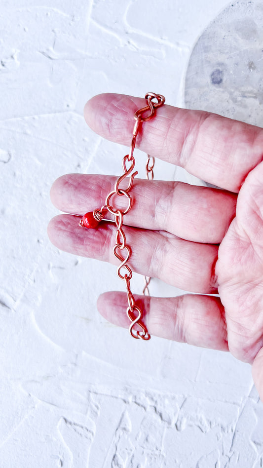 Infinite Flame – Copper Infinity Bracelet with Red Jade