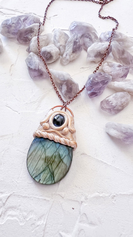 Shadow Anchor — Labradorite and Clay Pendant Necklace
