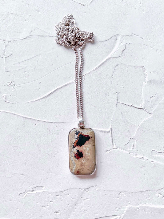 Earth Memory – Ocean Jasper and Silver Hinged Pendant Necklace