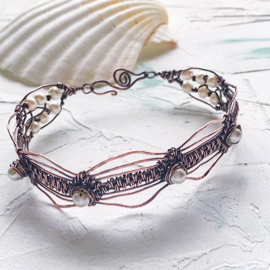 Copper Wire Woven Pearl Bracelet One Of a Kind