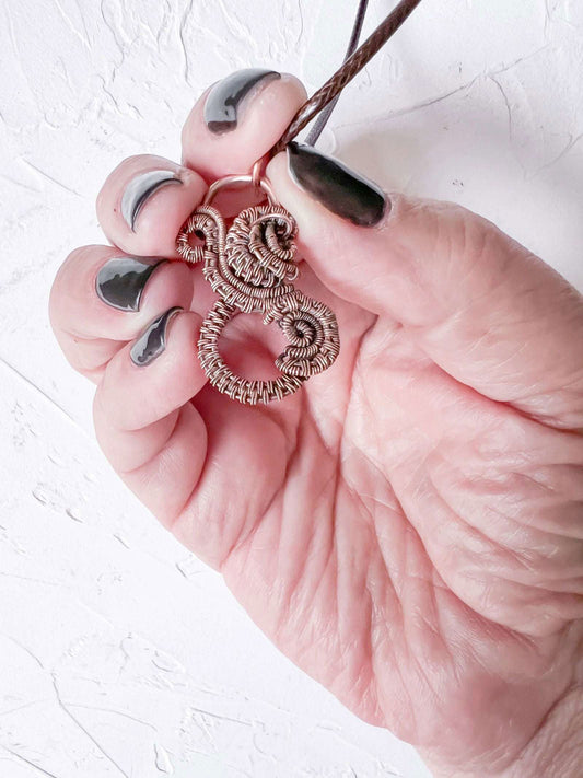 Copper Wire Woven Pendant Necklace Hand Made Amulet