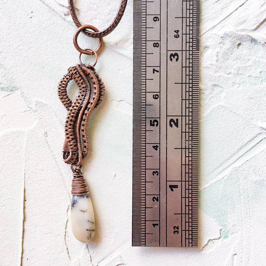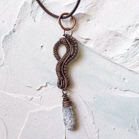 Copper Wire Woven Pendant Necklace Hand Made with a Merlinite faceted bead