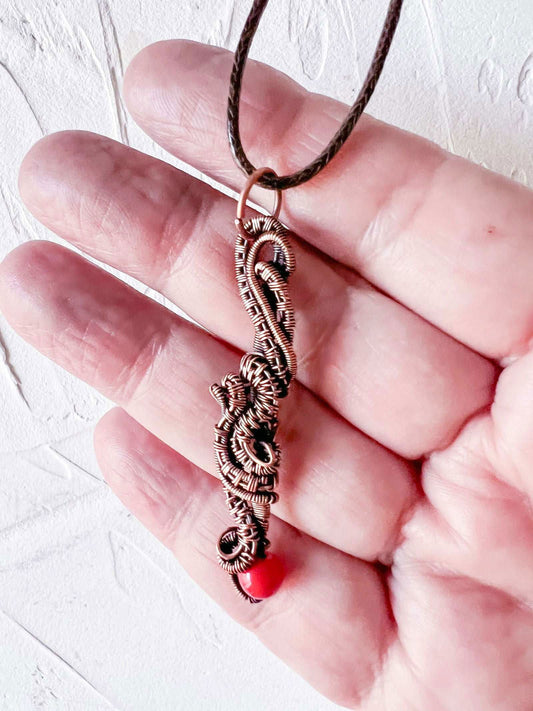Copper Wire Woven Treble Clef Pendant Necklace with Crystal Bead
