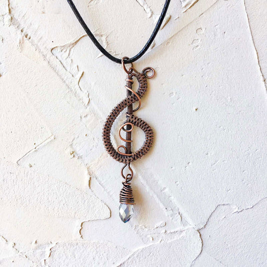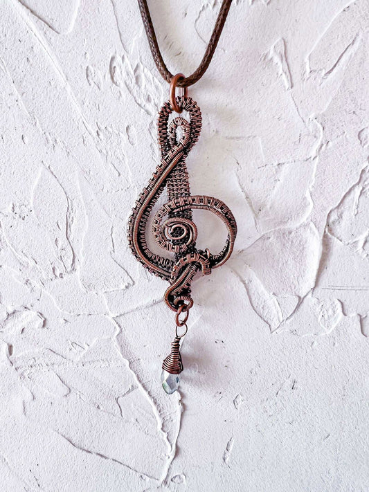 Copper Wire Woven Treble Clef with Crystal Pendant Necklace