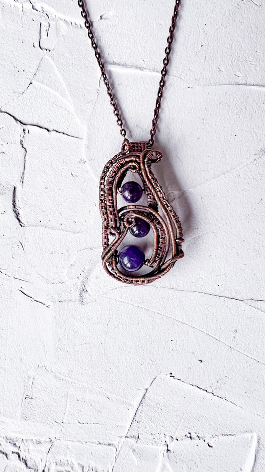 Trio of Intuition – Copper and Amethyst Pendant Necklace