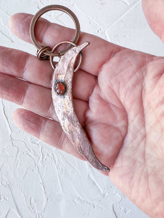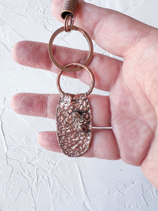 Copper Organic Snakeskin Shed Keyring with Crystal Accents