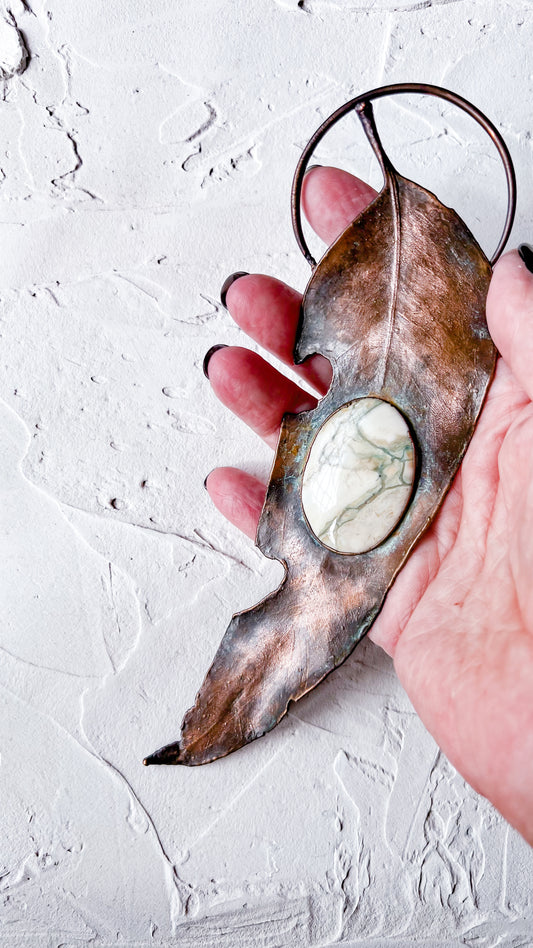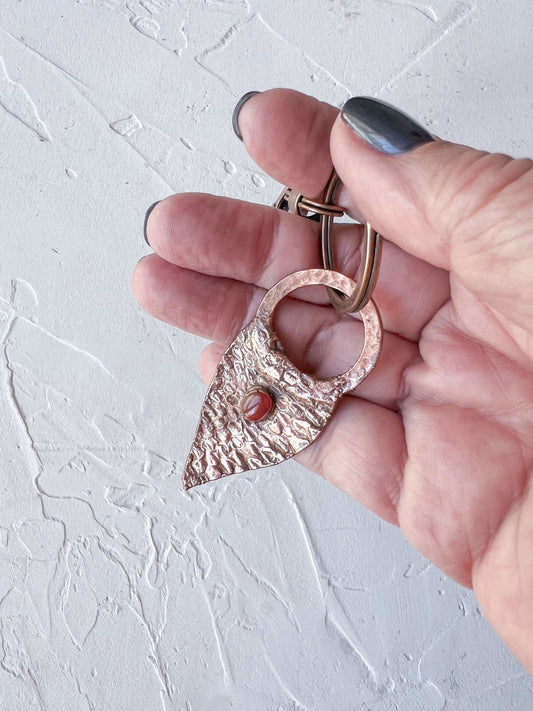 Copper Organic Gum Leaf with Onyx Accent Keyring